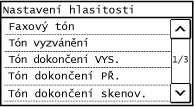[Faxový tón] / [Tón vyzvánění] / [Tón dokončení VYS.] / [Tón dokončení PŘ.] / [Tón dokončení skenování]