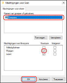 Selecteer in [Namen van groepen of gebruikers] [Iedereen].