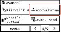 Vajutage juhtpaneelil [Koodvalim.] kuval [Avamenüü].