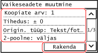 Kopeerimise sätted täidetakse, et saaksite kopeerida vaid juhtpaneelil