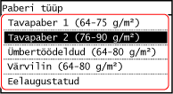 Vaikimisi on sahtlis paberi formaadi ja tüübi säteteks A4 ja Tavapaber 2. Kui panete sahtlisse erineva formaadiga või tüüpi paberit, muutke paberi sätteid.