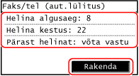 Kõne katkestamiseks valige [Lõpeta], faksi vastuvõtmiseks [Võta vastu].