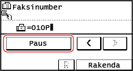 [Settings/Registration] [TX Settings] [Fax TX Settings] [Edit] valikus [Set Pause Time], sisestage pausi kestus [OK] |