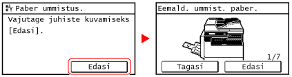 Ärge kasutage kinnikiilunud paberi seadmest eemaldamiseks jõudu.Paberi eemaldamisel jõu kasutamine võib põhjustada kehavigastusi ja kahjustada seadme osi. Kui te ei saa paberit eemaldada, pöörduge edasimüüja või hooldusesindaja poole.
