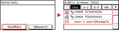 Εάν εμφανιστεί η οθόνη [PIN Βιβλίου Δ/νσεων], εισαγάγετε το PIN και πατήστε [Εφαρμογή].