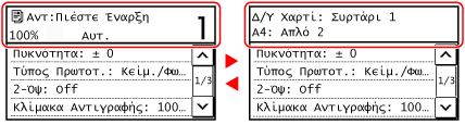 Αυτόματη εκκαθάριση των ρυθμίσεωνΑπό προεπιλογή, αν δεν γίνει καμιά ενέργεια έπειτα από κάποιο χρονικό διάστημα, οι ρυθμίσεις που διαμορφώνονται στην οθόνη εκκαθαρίζονται και εμφανίζεται η οθόνη [Αρχική]. Μπορείτε να αλλάξετε τον χρόνο μετά την πάροδο του οποίου θα εκκαθαριστούν οι ρυθμίσεις και θα εμφανιστεί η οθόνη.