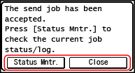 כדי להציג את מצב השליחה והיומן, לחץ על [Status Mntr.]. לחיצה על