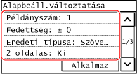 Emellett a beállításokat visszaállíthatja az itt megadott beállításokra, ha bármelyik funkcióképernyőn megnyomja a