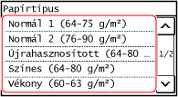 Azt javasoljuk, hogy jegyezzen be egy gyakran használt nem szabványos papírméretet. A papírméret kiválasztására szolgáló képernyőn előhívhatja a bejegyzett papírméreteket, így időt takaríthat meg a papírméret megadásakor. A készüléken legfeljebb három egyéni méretet jegyezhet be.