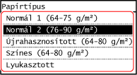 Alapértelmezett beállításként a papírméret az A4, a papírtípus pedig a Normál 2 értékre van állítva. Ha ettől eltérő méretű vagy típusú papírt használ, módosítsa a papírbeállításokat.