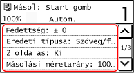 Nyomja meg az [Fedettség] lehetőséget a másolási képernyőn.