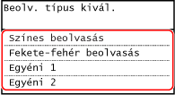 Megjelenik a beolvasás típusának kiválasztására szolgáló képernyő.