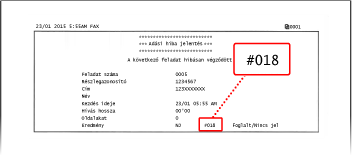 Ha nem lehet nyomtatni, nem lehet elvégezni a beolvasott adatok vagy faxok küldését vagy fogadását, illetve egyéb hiba esetén egy hibakód („#” jellel kezdődő háromjegyű szám) jelenik meg a jelentésben vagy a feladatnaplóban.