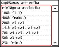 Ja oriģināla formāts ir mazāks, daļa no attēla var nebūt redzama vai attēls uz papīra var tikt drukāts mazāks.