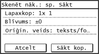Tiek skenēts nākamais oriģināls, un tiek parādīts tas pats ekrāns.