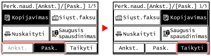 Norėdami perkelti žymiklį, spauskite [Ankstesn.] arba [Paskesnis].