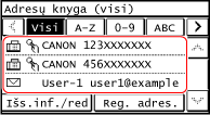 Jei adresatus nurodote iškviesdami adresų knygelę ekrane [Pagrindinis] arba nuskaitymo ar fakso ekrane, naudokite adresatų sąrašą.