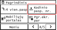 Valdymo skydelyje paspauskite [Kodinio pasp. nr.] ekrane [Pagrindinis].