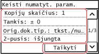 Parankinių parametrų iškvietimas kopijavimo ekrane