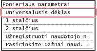 Jei daugiafunkciam dėklui visada naudojate tokį patį popierių, popieriaus formatą ir tipą galite užregistruoti. Taip nebus rodomas popieriaus parametrų ekranas, kurių jums nereikės konfigūruoti.