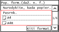 Paspauskite [Kiti format.] ir rodomame sąraše pasirinkite popieriaus formatą.