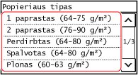 Pasirinkite popieriaus tipą, kuri norite užregistruoti.