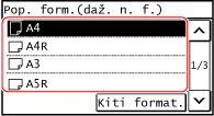 Paspauskite [Kiti format.] ir rodomame sąraše pasirinkite popieriaus formatą.