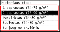 Pasirinkite į popieriaus stalčių įdėto popieriaus tipą.