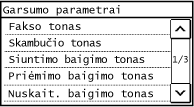 [Fakso tonas] / [Skambučio tonas] / [Siuntimo baigimo tonas] / [Priėmimo baigimo tonas] / [Nuskaitymo baigimo tonas]