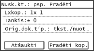 Kartokite šį procesą, kol nuskaitysite visus originalus. Jūs taip pat galite paspausti [Tankis] ir [Originalo tipas] norėdami pakeisti parametrus kiekvienam originalui. Atsižvelgiant į nurodytus kopijavimo parametrus, [Originalo tipas] pakeisti negalima.