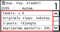 Be pagrindinių kopijavimo parametrų, aparate taip pat galima nustatyti dvipusio kopijavimo, vaizdo kokybės koregavimo ir kitus parametrus pagal originalą ir jūsų tikslą. Parametrai konfigūruojami kopijavimo ekrane.