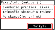 Nustatykite tai tuomet, kai priėmimo režimui pasirinktas [Faksas / telefonas (aut. perjungimas)]. Jei pasirinkote kitą priėmimo režimą, šio veiksmo atlikti nereikia.