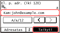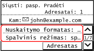Jei siunčiant adresatas yra apribotas dėl siuntimo funkcijos autentifikavimo parametrų, negalėsite nurodyti kito adresato. Dėl išsamesnės informacijos kreipkitės į administratorių.