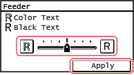 در [Feeder] یا [Platen Glass]، تنظیمات را با دادن اولویت به بازتولید متن رنگی یا متن سیاه، انجام دهید.