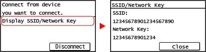 برای بررسی SSID و کلید شبکه دستگاه، گزینه [Display SSID/Network Key] را فشار دهید.