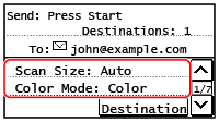 بررسی کنید که مقصد صحیح باشد، و سپس [Start Scan] را فشار دهید.