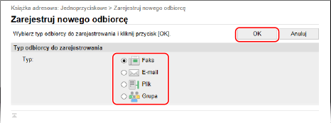 Edycja lub usuwanie zarejestrowanych miejsc docelowychJeśli wybierzesz odbiorcę i klikniesz [Edycja] na ekranie w kroku 4, możliwe będzie edytowanie zarejestrowanych informacji.