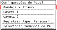 Quando o papel é colocado no tabuleiro multifunções, o ecrã de seleção do tamanho e tipo de papel é apresentado no painel de controlo.