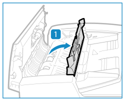 Abra a tampa interior do alimentador.