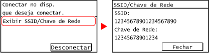 Prima [Exibir SSID/Chave de Rede] para verificar o SSID e a chave de rede da máquina.