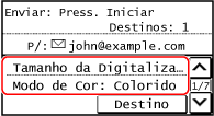 Se, ao enviar, o destino estiver restrito devido às definições de autenticação para a função de envio, não pode especificar outro destino. Para obter mais detalhes, contacte o administrador.
