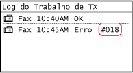 Se não for possível imprimir, se não for possível enviar ou receber dados digitalizados ou um fax ou se ocorrer outro erro, é apresentado um código de erro (número de três dígitos que começa com "#") no relatório ou no registo de trabalhos.