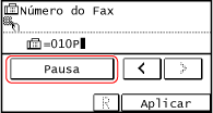 Ao enviar um fax para um destino internacional, introduza o número de acesso internacional, o indicativo do país e o número de fax do destino, por esta ordem. Prima [Pausa] entre os números para adicionar uma pausa.