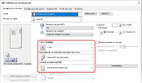 [Ordem das páginas] [Impressão de um lado/dos dois lados/de livreto] [Local de encadernação].