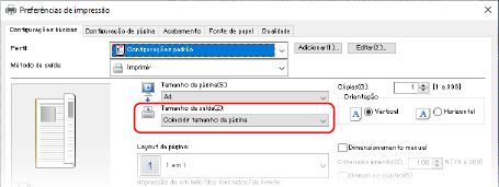 Faça corresponder o [Tamanho de Saída] no controlador de impressora ao formato do papel em que pretende imprimir.