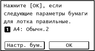 Если для [Уведомление о проверке настроек бумаги] задано [Вкл.], отображается приведенный выше экран. Если требуется изменить настройки, начните с [Настр. бум.].