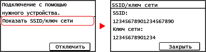 Нажмите [Показать SSID/ключ сети], чтобы проверить SSID и сетевой ключ аппарата.