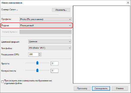 Выберите драйвер сканера (ScanGear MF или WIA) аппарата и настройте параметры сканирования.
