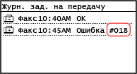 Если невозможно выполнить печать, невозможно отправить или получить сканированные данные или факс либо произошла другая ошибка, в отчете или журнале заданий отображается код ошибки (трехзначный номер, начинающийся с "#").