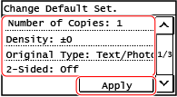 Можете позвати подешавања притиском на [Favorite Copy Set.] дугме на [Home] екрану.